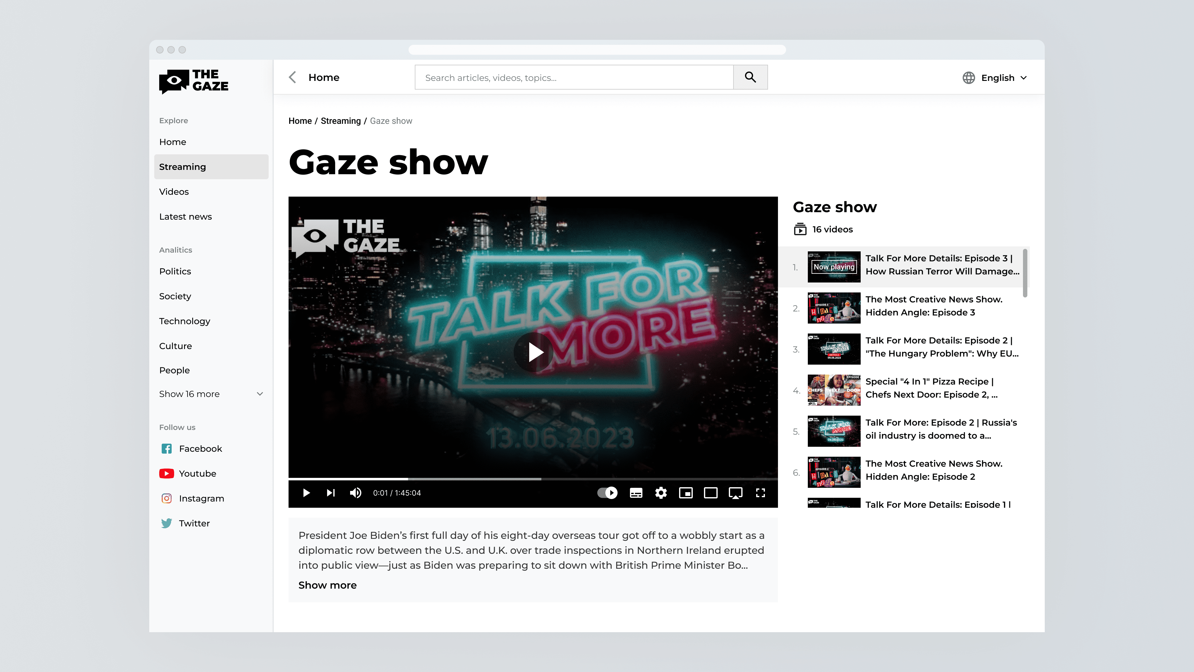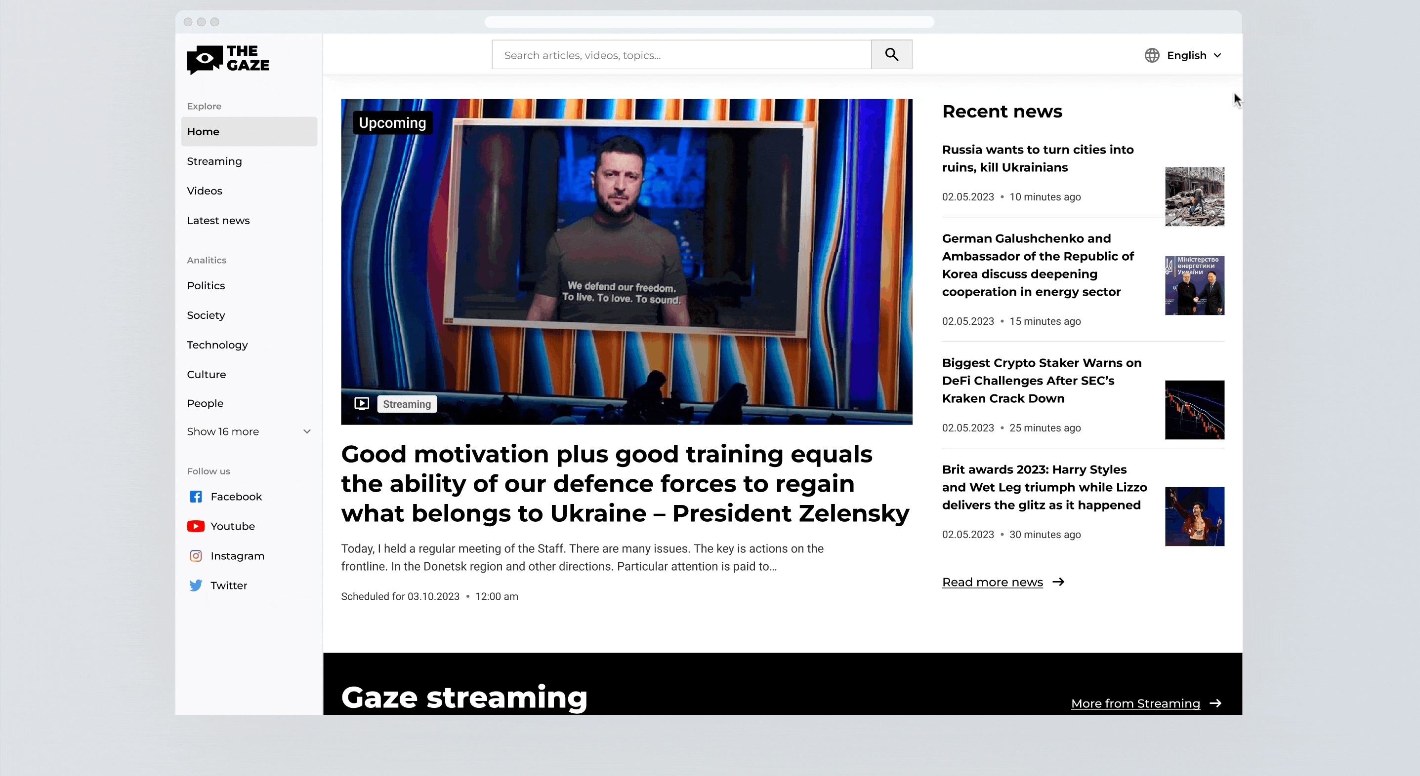 Kitsoft developed The Gaze news portal for the State Enterprise "The International Broadcasting Multimedia Platform of Ukraine".